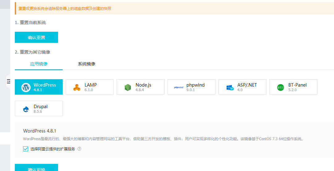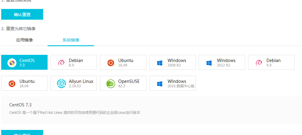 5、重置系统:如果对于自己的系统不满意,可以在此处重置或更换服务器的系统