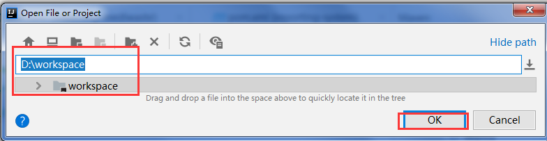 在Open File or Project 窗口中,找到并选择workspace目录,并点击OK