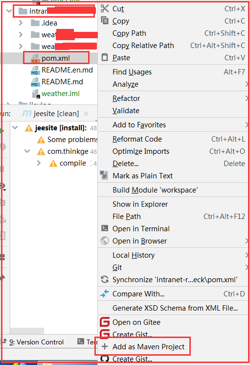 找到项目的pom.xml文件,右键点击 + Add as Maver Project 命令,