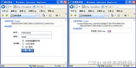 登录时可以选择登录信息的有效期:关闭浏览器即失效、30天内有效与永久有效。通过设置Cookie的age属性来实现,注意观察代码。运行效果如图1.7所示。