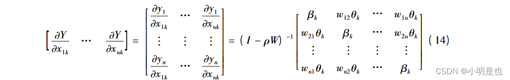 式(14)每一行反映了地区i受到本地区的直接影响和其他地区