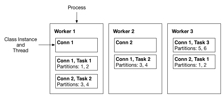 当连接器首次提交到集群时,工作人员会重新平衡集群中的全套连接器及其任务,以便每个工作人员的工作量大致相同。当连接器增加或减少它们需要的任务数量时,或者当连接器的配置发生更改时,也会使用相同的重新平衡过程。当工作人员失败时,任务会在活动工作人员之间重新平衡。当任务失败时,不会触发重新平衡,因为任务失败被视为例外情况。因此,失败的任务不会由框架自动重新启动,而应通过REST API重新启动。