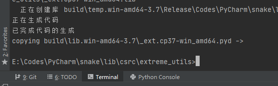 正在创建库 build\temp.win-amd64-3.7\Release\Codes\PyCharm\snake\lib\csrc\extreme_utils\_ext.cp37-win_amd64.lib 和对象 build\temp.win-amd64-3.7\Release\Codes\PyCharm\snake\lib\csrc\extreme_utils\_ext.cp37-win_amd64.exp