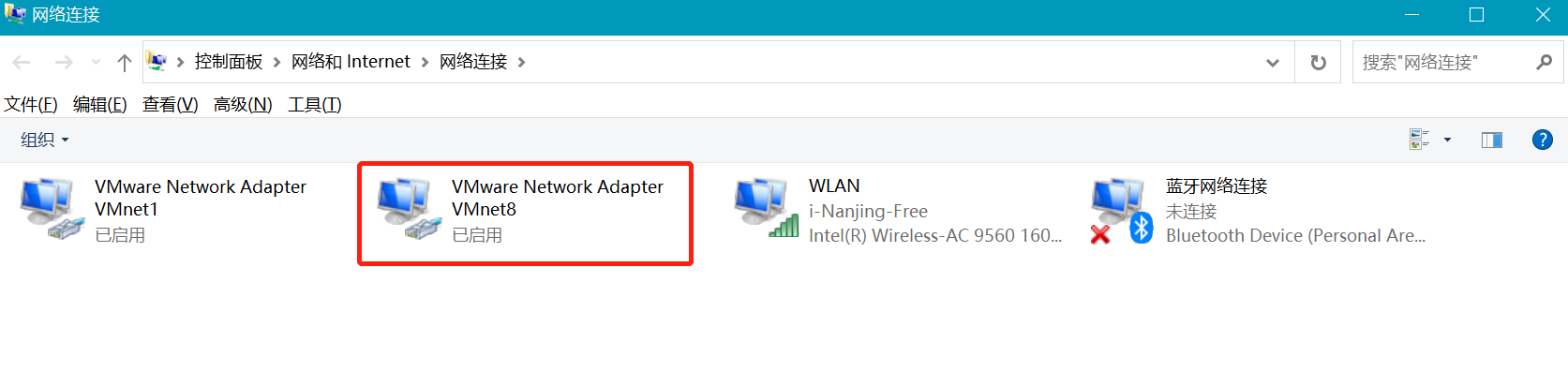 2、修改宿主机的网络连接配置,打开网络连接,此处不赘述,不知道怎么找的根据自己使用的系统去百度,本机网络连接窗口如下: