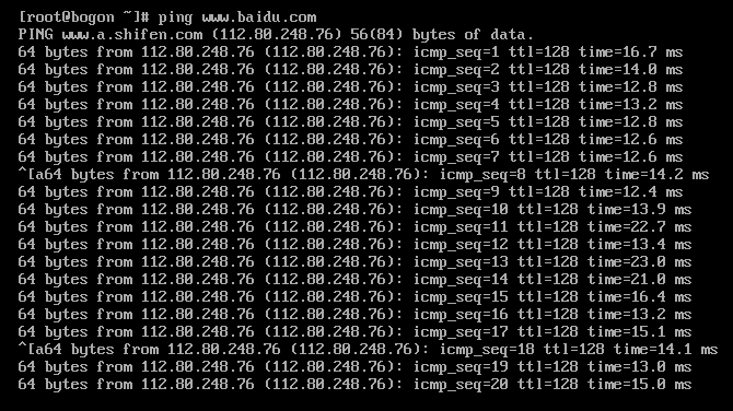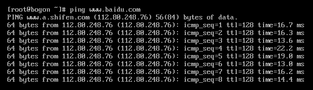 首先,确定目前虚拟机上的Linux可以连接到网络,比如ping百度: