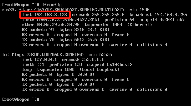 我们可以看到,目前连接网络时完全没有问题的 ,这是输入ifconfig指令,可以看到目前的IP地址,那么接下来,修改虚拟机的网络配置和宿主机的网络配置即可。