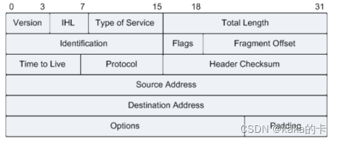 | Padding | 可变 | 填充字段,用来补位,使整个首部长度是4字节的整数倍。 |