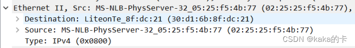 | Type | 2字节 | 协议类型。下表列出了链路直接封装的协议。IP协议=0x0800 |