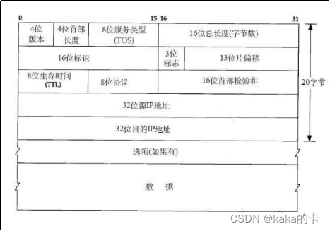 | IHL | 4比特 | 首部长度,如果不带Option字段,则为20,最长为60,该值限制了记录路由选项。以4字节为一个单位。 |