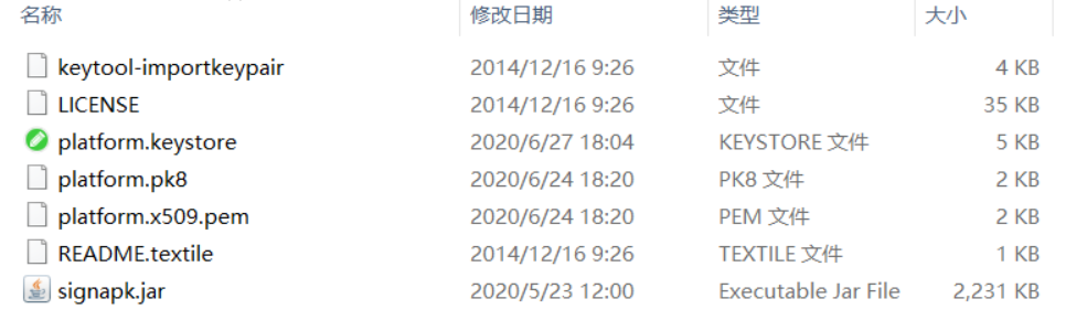 1.将keytool-importkeypair-master文件(见附件)放系统源码下,拷贝源码下的platform.pk8,platform.x509.pem,signapk.jar到此文件根目录下