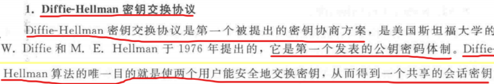 在一个不安全的信道(公开信道)上协商出一个安全的密钥(只有参与者知道的密钥)