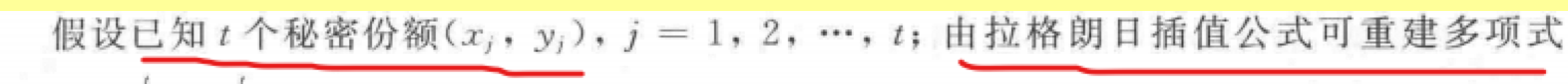 使得:1由任意t个或多于t个已知的秘密份额mi,可以计算出共享秘密M;