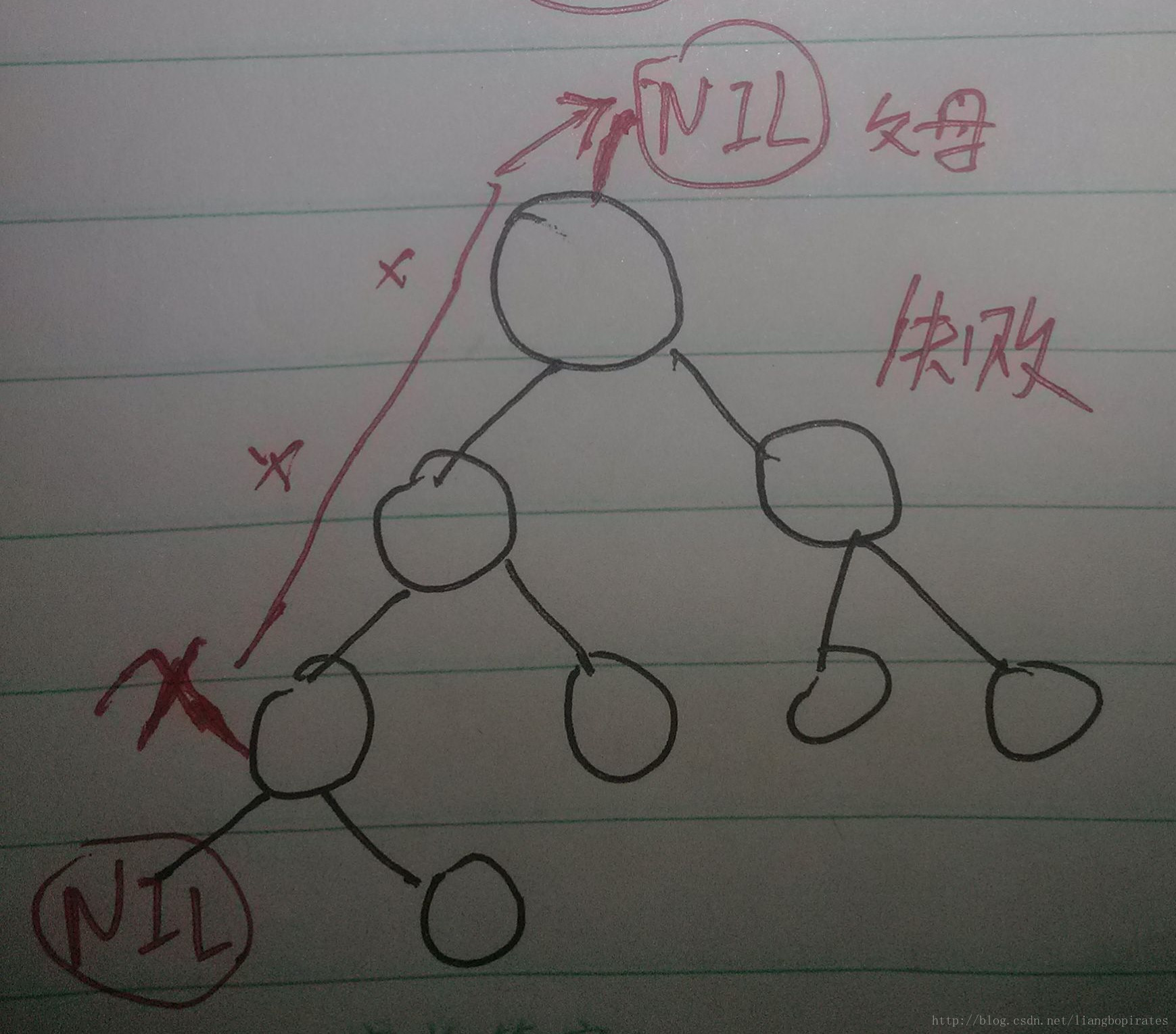 对于第二种情况,更简单了,可能父母是NIL,即X结点是根结点。