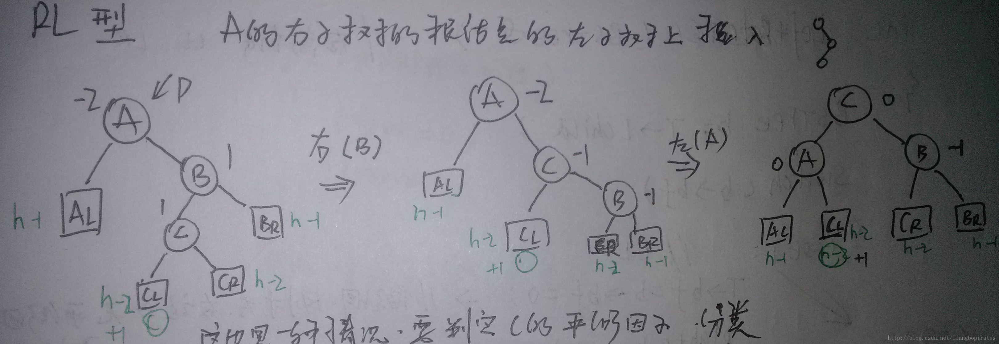 AVL树仅仅只是平衡二叉树的一种而已,具有以下性质:它是一棵空树或它的左右两个子树的高度差的绝对值不超过1,并且左右两个子树都是一棵AVL树。若二叉树上结点的平衡因子定义为该结点的左子树的高度减去右子树的高度。那么AVL树的平衡因子就只能是0,-1,1。如果有一个结点的平衡因子的绝对值大于1 ,那么这个二叉树就不是AVL树。如果由于插入和删除结点导致AVL树不平衡,那么就从这个结点开始进行一次或多次的左右旋转和高度的调整,最后使二叉树变得平衡。 老严那本书上讲的平衡二叉树仅仅只是AVL算法的一种平衡二叉树而已,不代表全部的。注意平衡二叉树一种平衡树,而AVL算法只不过是调整树的高度保持平衡的算法而已,不是平衡二叉树的全部。平衡二叉树有很多种,这里我把一些以前的AVL笔记中中的旋转K过来看一下吧。
