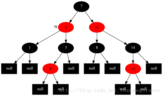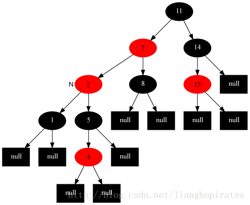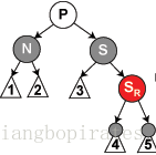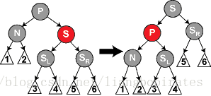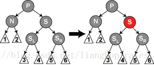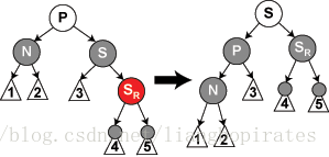 如果兄弟结点S是红色,那么S的父亲结点P和S的孩子SL和SR都必然是黑色,此时N也是黑色的。