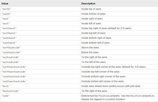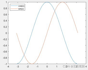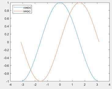 legend("cos(x)","sin(x)",'Location','northwest');