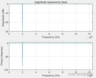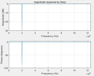 freqz(b, a, n, Fs); title('magnitude response by freqz');