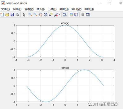 figure('NumberTitle','off','Name','cos(x) and sin(x)');