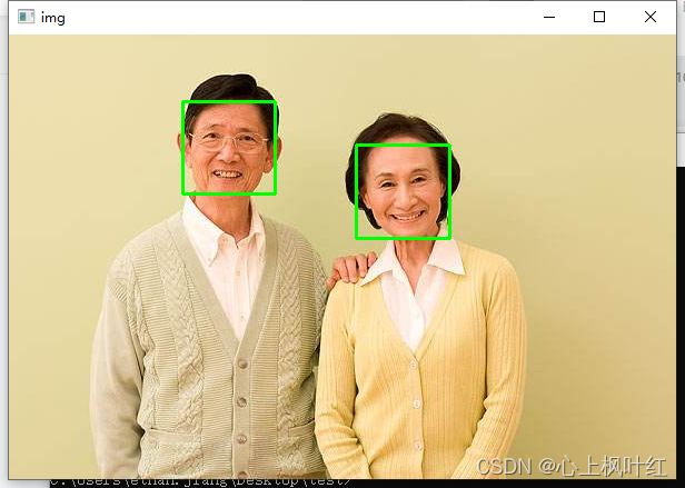 cv2.imshow("img",img1) 显示画好矩形的人脸识别图片。