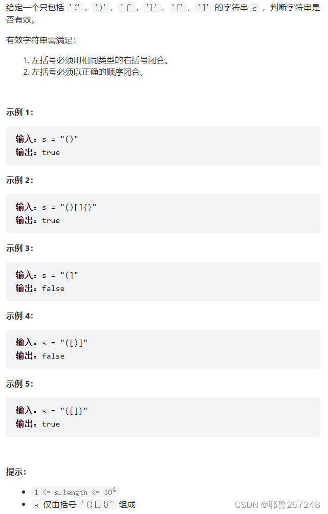 这道题不能用直接数括号数量来进行解答,因为还涉及顺序的问题。括号的匹配用什么来做是最合适的呢?答案是用栈。