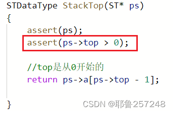 {assert(ps);assert(ps->top > 0);//top是从0开始的return ps->a[ps->top - 1];}