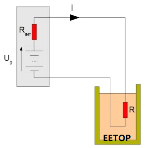 让我们从最基本的例子开始:DC。假设你有一个电压为 U0 的电池,例如 12 V。不幸的是,不存在完美的电源,因此该电池的内部寄生串联电阻 (R IN) 为 1 Ω。这意味着空载时电池电压为 U0 = 12V,当负载电流为1A,它只有 11V等。假设你将此电池用作电源并将其端子连接到外部电阻器 R 上(参见 图 1)。欧姆定律的应用很简单。通过电路的电流为:
