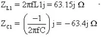 可能是一个快速的手动计算将帮助你了解正在发生的事情。我相信你还记得在 1kHz 频率下如何计算电感 L1 和电容 C1 的阻抗,对吧?我们有: