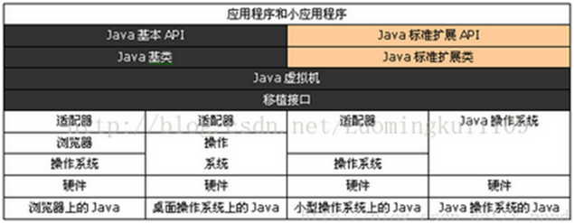 Java平台由Java虚拟机和Java应用程序接口搭建,Java语言则是进入这个平台的通道,用Java语言编写并编译的程序可以运行在这个平台上。这个平台的结构如下图所示: