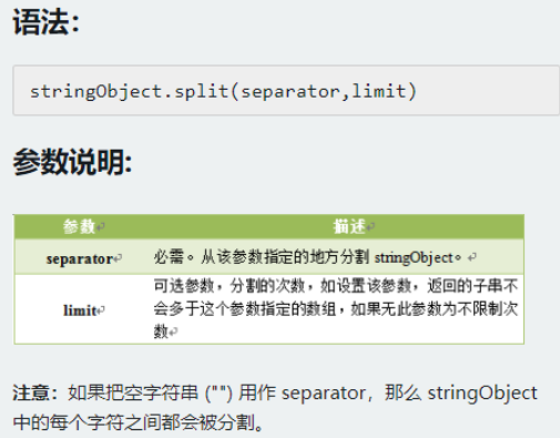 1.讲解:split() 方法将字符串分割为字符串数组,并返回此数组。