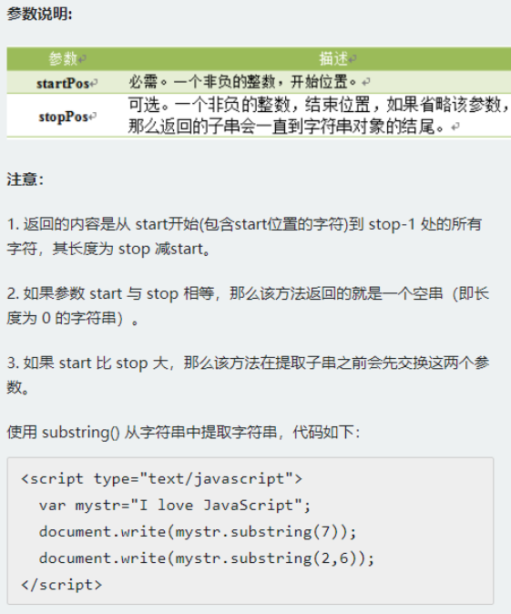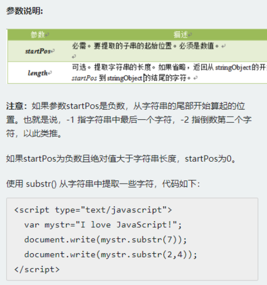 substr() 方法从字符串中提取从 startPos位置开始的指定数目的字符串。