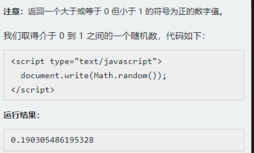 random() 方法可返回介于 0 ~ 1(大于或等于 0 但小于 1 )之间的一个随机数。
