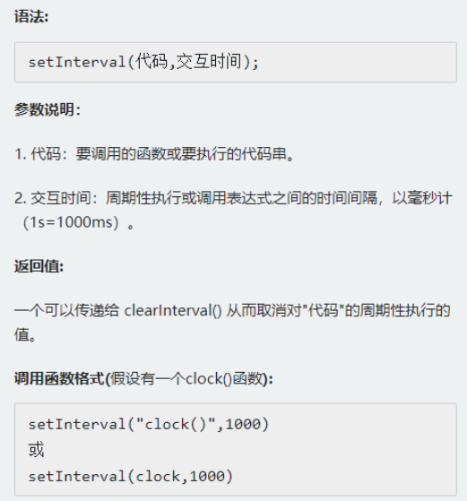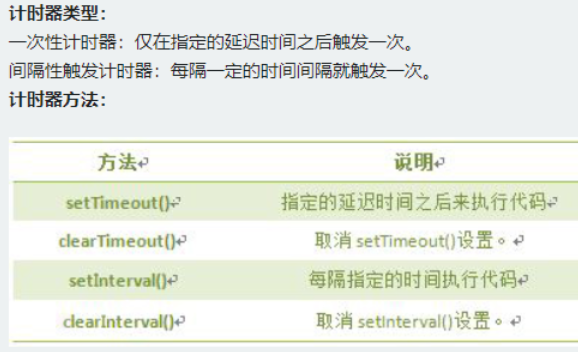 setTimeout()计时器,在载入后延迟指定时间后,去执行一次表达式,仅执行一次。