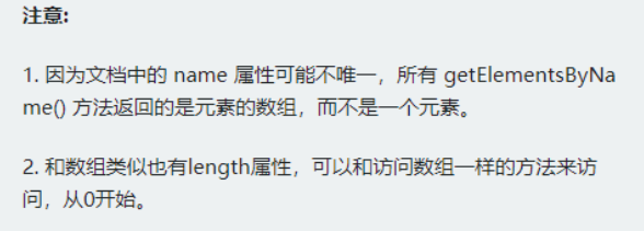 与getElementById() 方法不同的是,通过元素的 name 属性查询元素,而不是通过 id 属性。