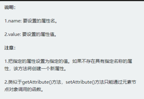 setAttribute() 方法增加一个指定名称和值的新属性,或者把一个现有的属性设定为指定的值。