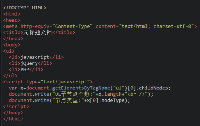 2. 文本节点:向用户展示的内容,如<li>...</li>中的JavaScript、DOM、CSS等文本。