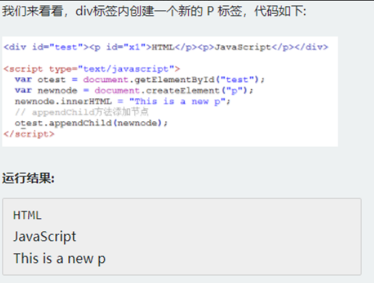 注意:要与appendChild() 或 insertBefore()方法联合使用,将元素显示在页面中。