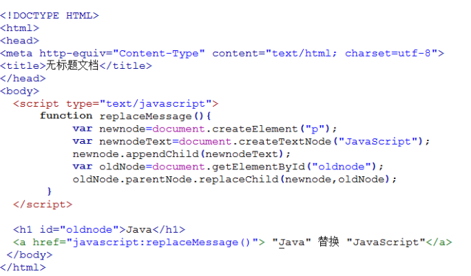 replaceChild 实现子节点(对象)的替换。返回被替换对象的引用。
