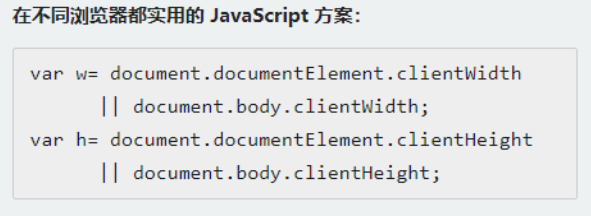 获得浏览器窗口的尺寸(浏览器的视口,不包括工具栏和滚动条)的方法: