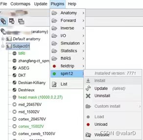 Plugins-spm12-install,安装spm工具箱。brainstorm提供了包括spm12、fieldtrip在内的多种工具的集成、调用,若您的电脑中已经安装了spm12,直接点击Load进行加载、