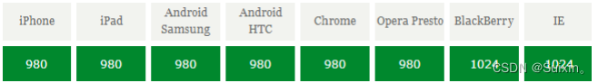 不同设备大小也不相同由设备出厂设置决定,下图列出了一些设备上浏览器的默认viewport的宽度。
