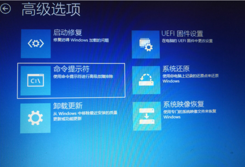 首先,依次点击疑难解答|命令提示行,大概步骤可能是这样,我也记不太清了,总之进入到命令提示行,输入命令: