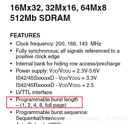 SDRAM芯片支持突发长度为1/2/4/8/全页。需要注意,突发访问,不能跨行(又称为跨页)访问。