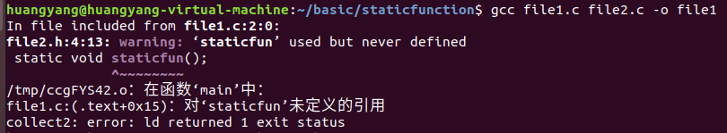 例:file1.c中使用file2.c中定义的静态函数报错