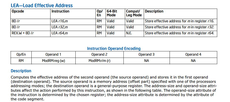 lea,官方解释Load Effective Address,即装入有效地址的意思,它的操作数就是地址;