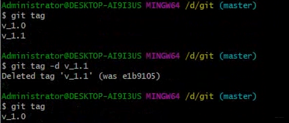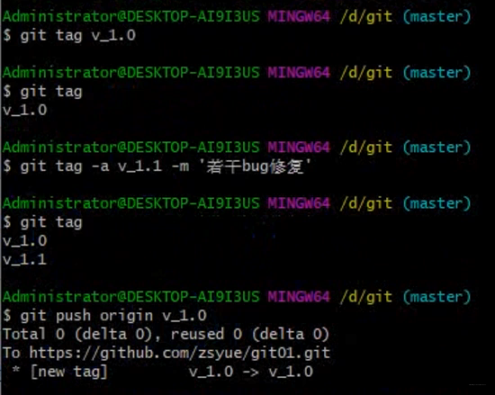 git push origin v1.0 将 tag v1.0 提交到远程仓库