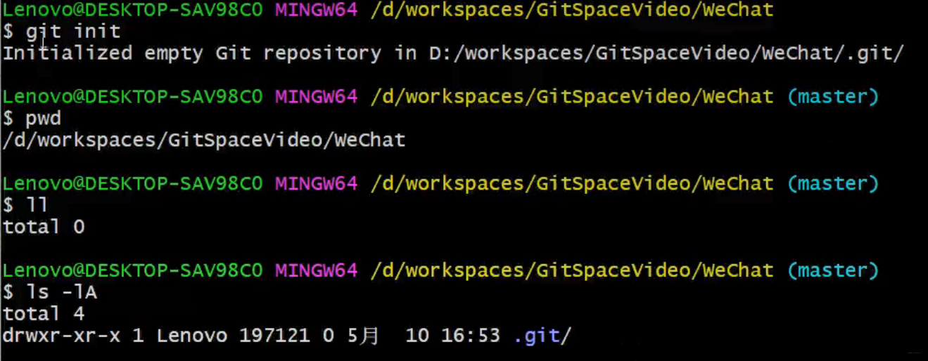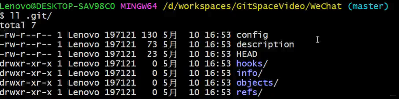 将产生.git隐藏的文件夹。.git目录里存放了本地库相关的文件,不要删除和修改。