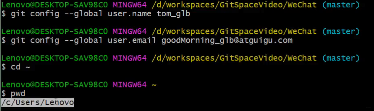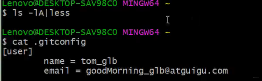 注意git config命令的--global参数,用了这个参数,表示你这台机器上所有的Git仓库都会使用这个配置。