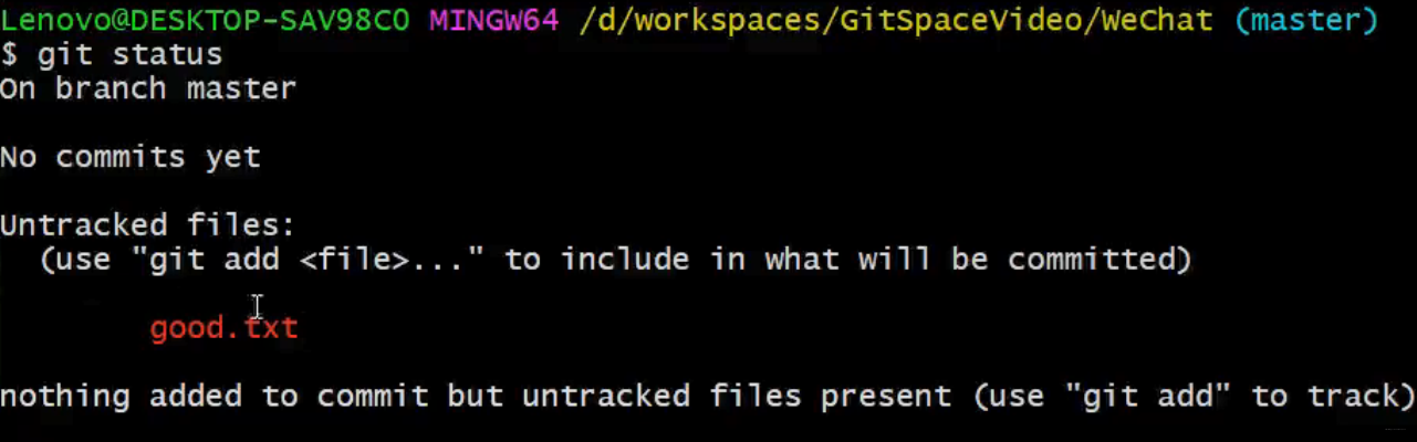 当前目录下新增的文件,都是untracked状态,未被跟踪状态。