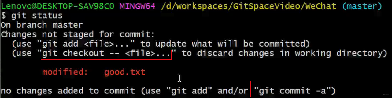 2、git add 文件名 , git commit -m “日志信息” (commit 此时是不能带文件名的)