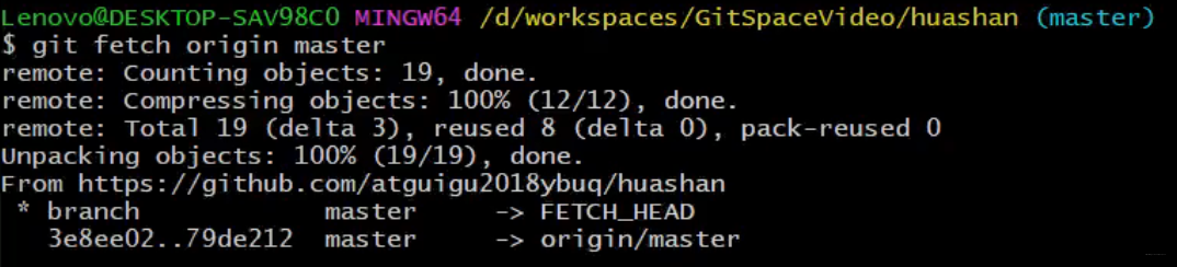 git fetch origin master //从远程主机的master分支拉取最新内容